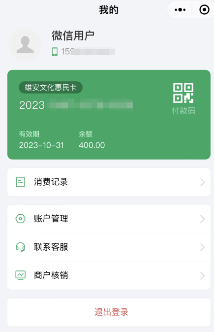 雄安新区居民申购“惠民卡”开通成功后,便可在合作商家进行消费使用。居民进入“雄安文化惠民卡”小程序出示“雄安文化惠民卡”二维码,商家通过扫描二维码确认优惠权益,完成核销。本卡有效期至2023年10月31日,有效期内可不限次消费,使用后不可退款。400元惠民金不可提现,用完为止,如有余额,到期自动清零。