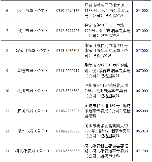 按照《河北省烟草专卖局(公司)2023年招聘公告》,经报名、资格审查、笔试、面试、考察及报考资格复审、体检等程序,确定了拟录用人员。现对拟录用人员信息进行公示(详见附件),如对拟录用人员录取资格等有疑异的,可通过电话、信函等方式反映,反映意见请署真实姓名。