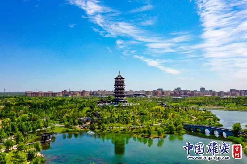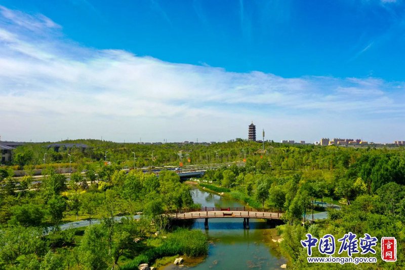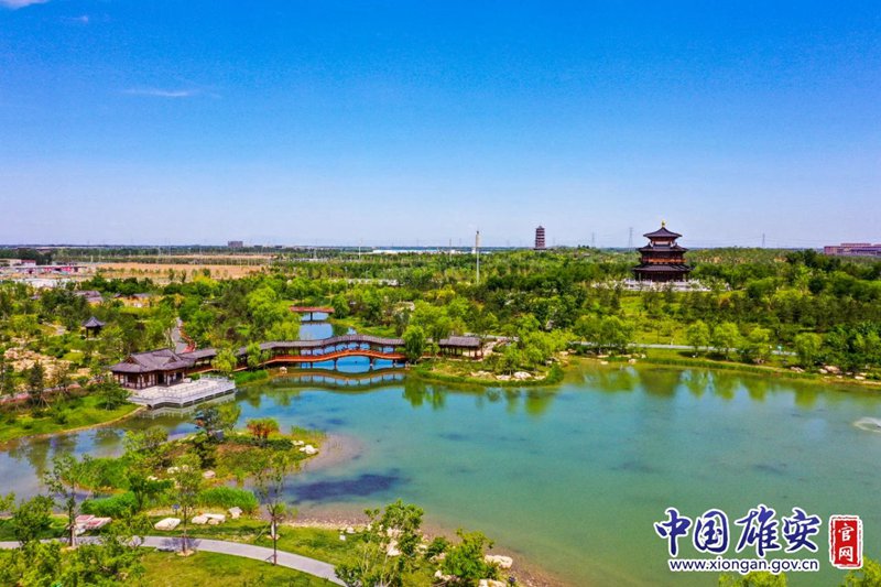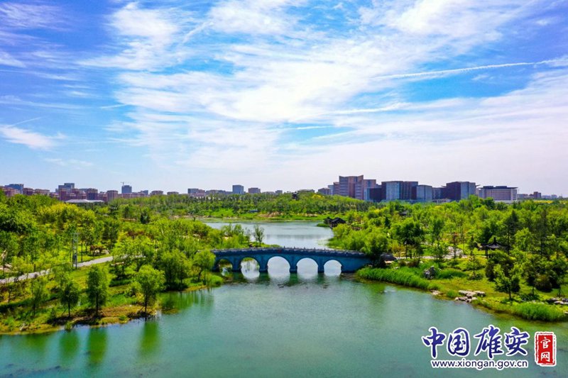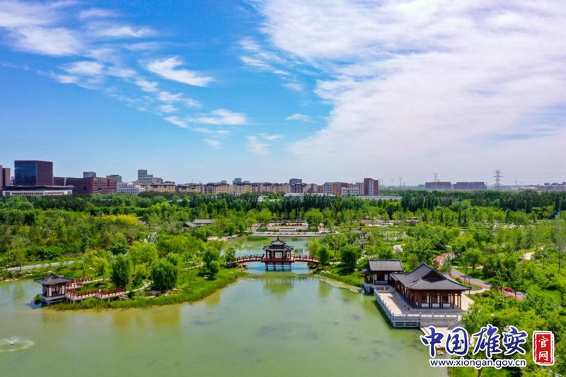 航拍的雄安悦容公园,绿意盎然。中国雄安官网高盟 摄