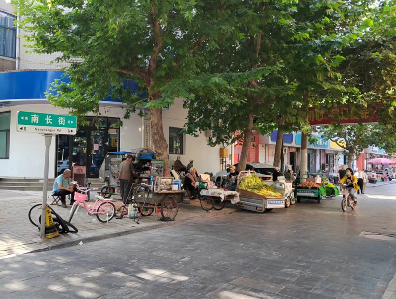 一处门楼边被磨得锃亮的上马石边,几位老人围在一起唠着家常。说起长街的历史,纷纷说道“邢台老城区就那么大点,南北长街是老城中轴线最长的主干道”“以前这个街是土路,后来统一铺了青砖”“这条街上的店铺门脸小,但种类很齐全,生活在这里很方便”……