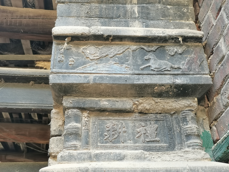 在北长街,一个高高门楼下,左侧放有一个石墩,顶上刻有莲花浮雕。“这石墩子挺老的,不记得什么时候放在这的。”70岁的长街居民史女士,带领记者来到长街里目前保存最为完整的老院子——刘家大院,她说这院子的历史很长,并且一直有人居住。穿过沿街的门楼是曲折的小巷,让人猜不出里面的景象。经过几间简陋的砖房,转过一个弯,别有洞天,古香古色的赵家大院赫然出现。只见门楼两侧刻着“耕礼”和“种义”,上面有仙鹤、鹿等砖雕装饰,朝里望去,一个青砖所砌的圈门将院子分为前后两进。