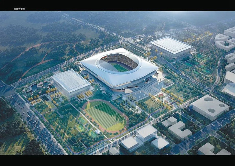 体育场和体育馆的观众席360度环绕体育场,分为低区看台、主席台、VIP包厢看台、高区看台等,观众席座位结合视线设计形成一个敞开式的碗形空间。同时,体育场和体育馆采用“场芯下沉模式”,将比赛空间降低到室外标高以下,形成看台和外场环境无高差贯通,有利于内外空间整体化。赛事功能和配套功能降低到外环境标高以下,功能分区、流线组织和管理运营更加高效。