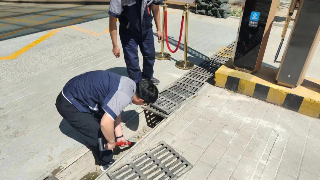 演练中,工作人员测试排污泵,清理雨水井和排水沟里面的杂物,保证排水畅通;救援人员用防汛沙袋在地下车库入口处砌筑防汛堤坝,阻止雨水倒灌……整个演练过程紧张有序。