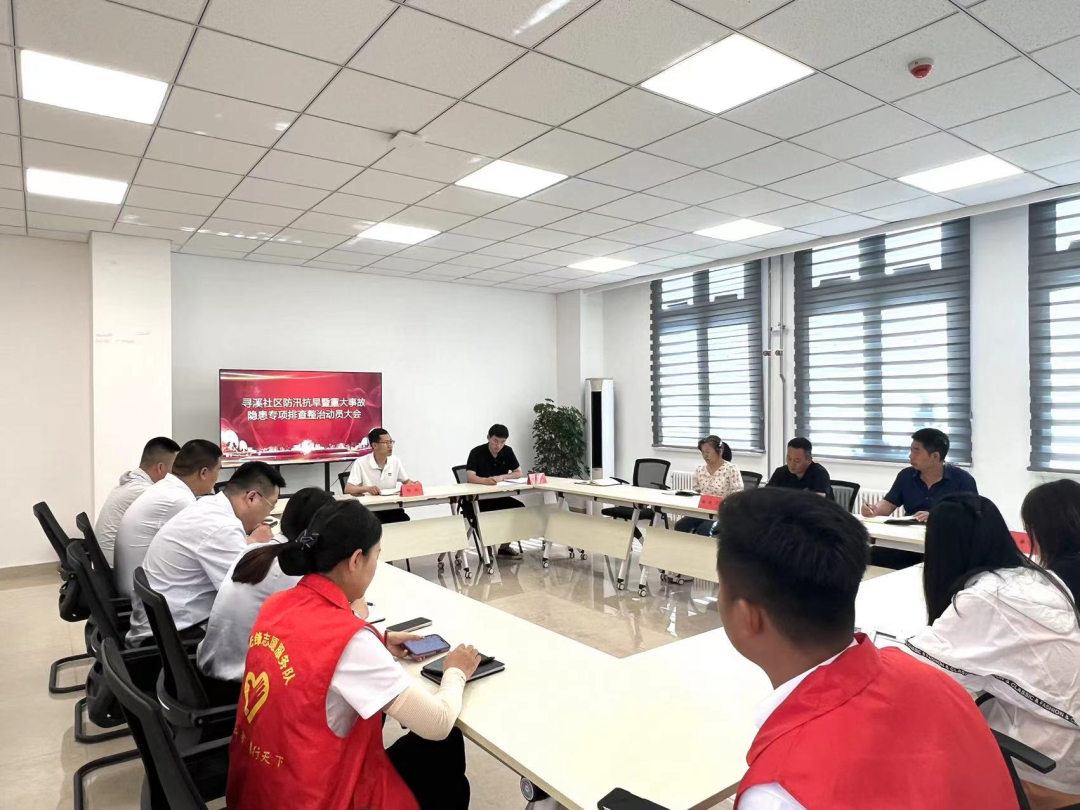 6月6日上午,寻溪社区召开防汛抗旱暨重大事故隐患专项排查整治动员大会,总包、物业单位相关防汛责任人,包联小区社区工作者、各小区楼院长参会。