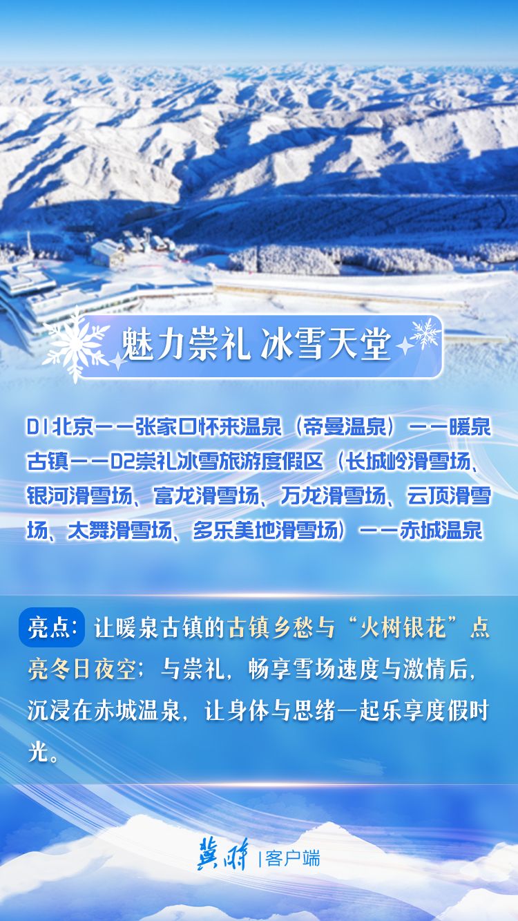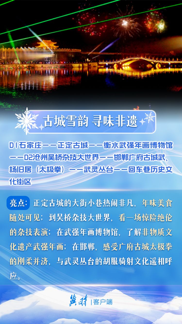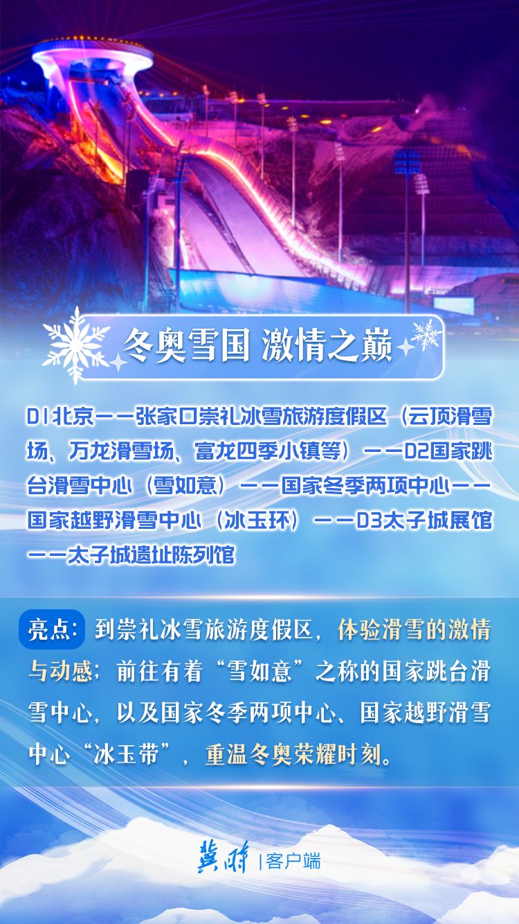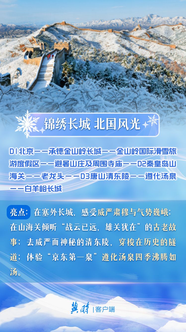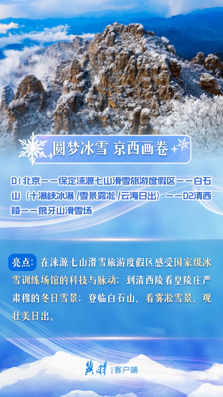 近日,河北省文化和旅游厅发布十条冰雪旅游精品线路,冬奥雪国,激情之巅;温泉康养,惬意休闲;冰瀑奇观,晶莹剔透;雪花漫舞,童趣飞扬……这个冬季,来河北,畅享冰雪之美!