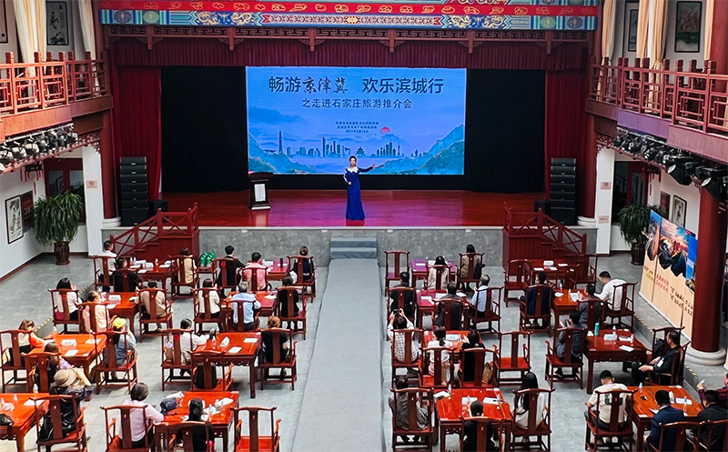 2023年4月19日,由天津市滨海新区文化和旅游局、石家庄市文化广电和旅游局联合主办的“畅游京津冀 欢乐滨城行”旅游推介会在正定古城举办。滨海新区文化和旅游局、石家庄市文化广电和旅游局、正定县文化广电体育和旅游局相关负责同志、滨海新区景区代表、河北省旅行社及新闻媒体代表等近80人参加本次推介会。