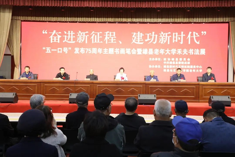 2023年4月27日上午,“奋进新征程、建功新时代”纪念中共中央“五一口号”发布75周年主题书画笔会暨老年大学禾夫书法展在雄县新时代文明实践中心成功举行。