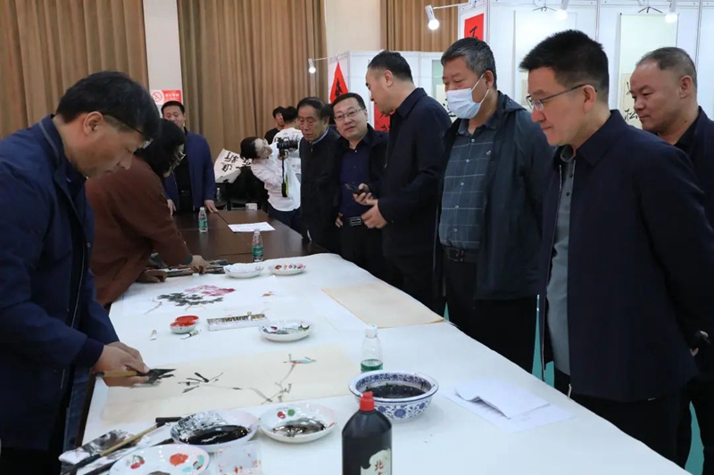 在笔会现场,书画爱好者围绕活动主题创作作品近百幅,以翰墨丹青的方式,颂党恩、赞党情、跟党走,讴歌新时代,描绘新未来。