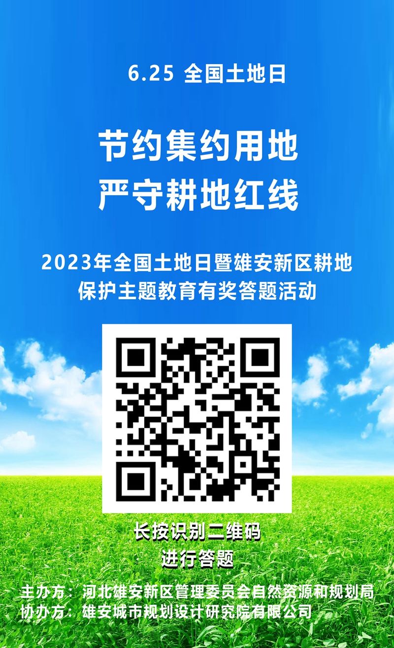 今年6月25日是第33个全国土地日!为提高大家对耕地保护的重视程度,雄安新区自然资源和规划局开展耕地保护知识有奖答题活动,快来参加吧!