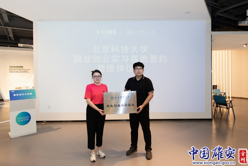 北京科技大学向雄安新区未来工业设计研究院授予“北京科技大学学生就业创业实习基地”牌匾。中国雄安官网发