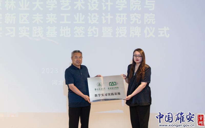 北京林业大学艺术设计学院向雄安新区未来工业设计研究院授予“教学实习实践基地”牌匾。中国雄安官网发