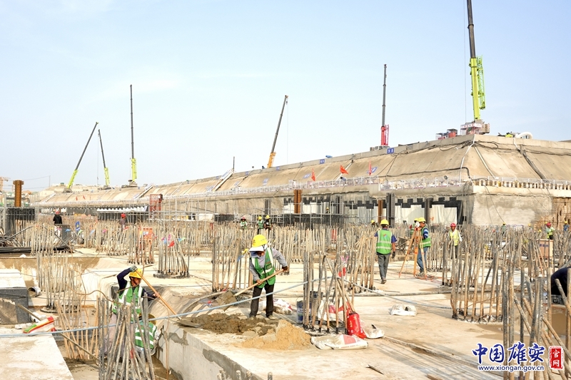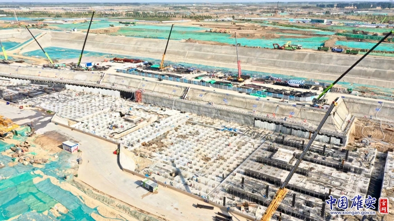 雄安城际站及国贸中心片区项目建设现场(航拍图)。中国雄安官网赵伟彤 摄