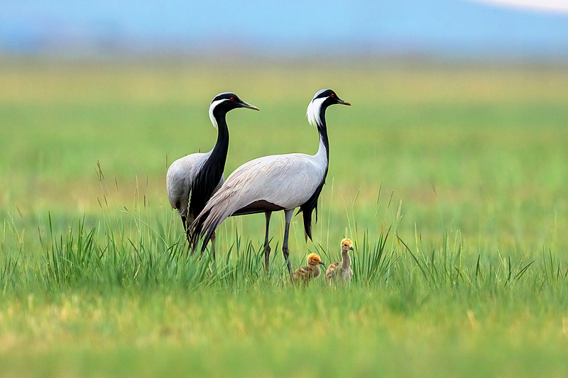 6月23日,在沽源县闪电河国家湿地公园内,河北省林草局组织该湿地公园工作人员、野生动物保护志愿者进行鸟类监测时,拍摄到蓑羽鹤育雏的影像。这是河北首次成功拍摄到蓑羽鹤繁殖育雏影像。