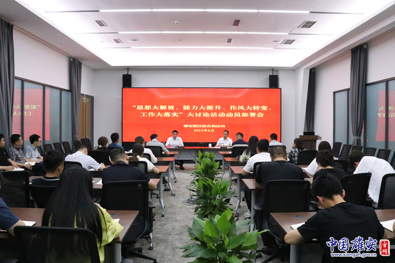 中国雄安官网7月1日电(封俊龙)6月29日,雄安新区综合执法局召开“思想大解放、能力大提升、作风大转变、工作大落实”大讨论活动动员部署会,对大讨论活动进行了动员部署。