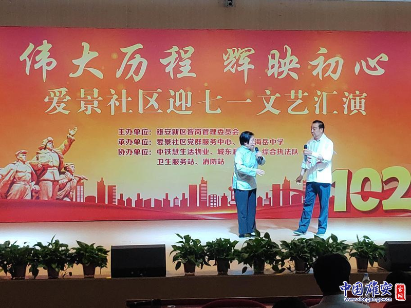 中国雄安官网7月2日电 为了庆祝中国共产党成立102周年,讴歌党的丰功伟绩,不断增强广大党员的光荣感、使命感,不断深化社区居民的爱党情怀,6月30日19时,“伟大历程 辉映初心”迎“七一”文艺汇演活动在海岳中学报告厅举行。