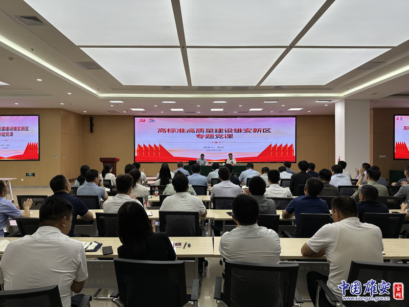 雄安新区建设和交通管理局、质量安全检测服务中心全体党员干部参加此次党课学习。