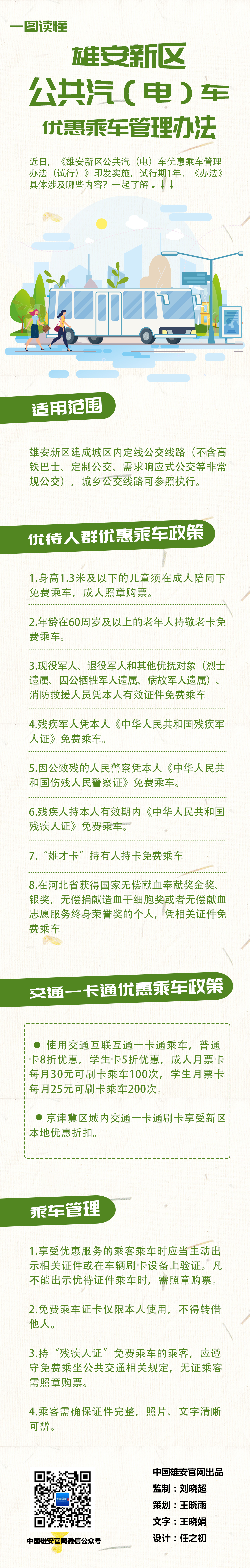 一图读懂丨雄安新区公共汽(电)车优惠乘车管理办法
