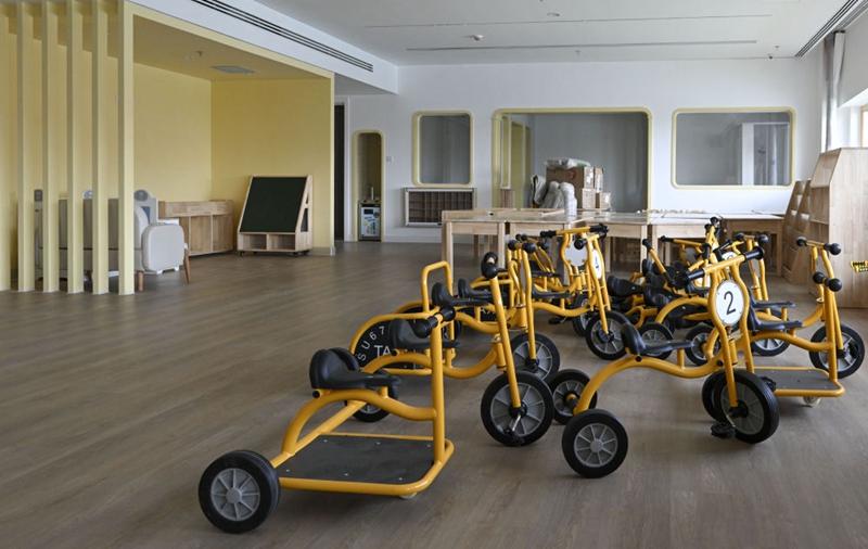 这是7月11日拍摄的雄安北海幼儿园的一间教室。