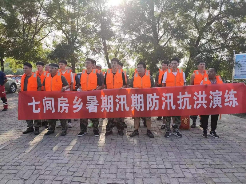 演练模拟了主汛期水位上涨、村内发生洪涝等情形,接到险情报告后,七间房乡启动防汛抢险应急预案,防汛指挥部迅速集结应急队伍,携带抢险器材,第一时间赶到现场,开展受困群众营救工作,组织群众按照既定分组路线有序开展人员转移、现场秩序维护、险情上报等环节。