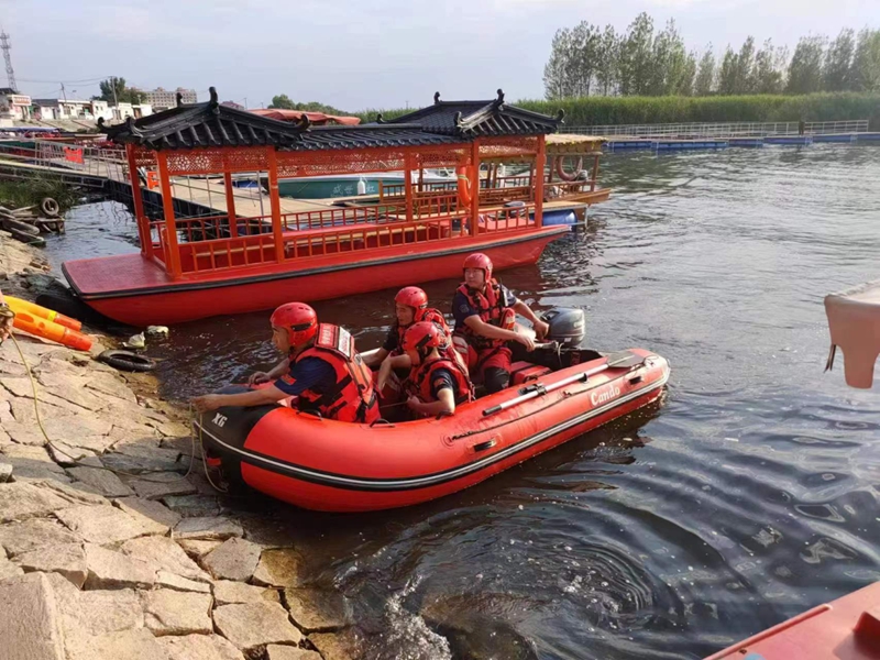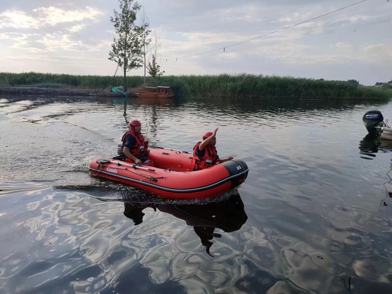 演练现场,利剑救援队工作人员操作救援快艇、水上救援机器人等设备,现场模拟对落水群众进行抢救。救援队伍在统一指挥下,分工协作、密切配合,快速、准确、有序地完成了防汛应急决策、人员搜救转运、人员疏散转移等各项防汛任务,演练圆满结束。