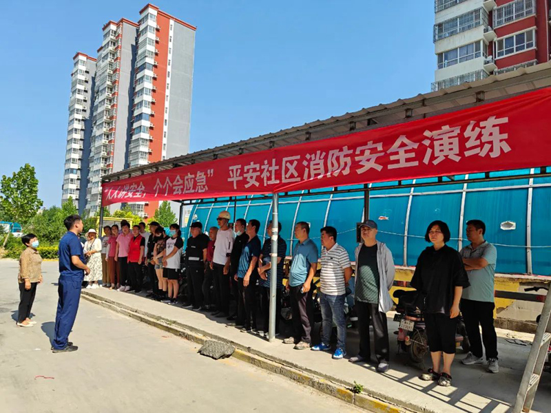 为了进一步加强平安社区居民消防安全意识,提高辖区内群众火灾防范意识应急能力及消防实践技能,7月18日,平安社区联合容城县消防大队在金台新城南区开展了以“人人讲安全,个个会应急”为主题的消防安全演练。