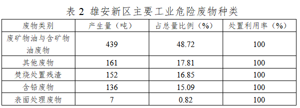 2022年,雄安新区申报产生工业危险废物的企业738家,全部执行危险废物电子联单制度,危险废物全部转移至省内有资质的处理企业进行利用处置,产生危险废物重点单位均按法律法规要求制定了危险废物环境管理计划和环境应急预案。