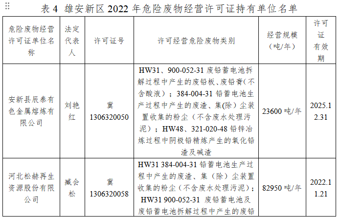 截至2022年,雄安新区持有危险废物经营许可证的企业共计4家,其中2家企业分别于10月和11月到期,未申请延续。