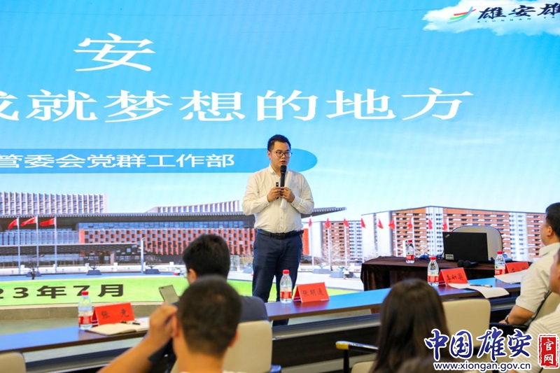 本次活动组织新区优秀年轻干部围绕学习贯彻党的二十大精神畅谈感悟,并结合本职工作就如何加快产业、人才引进,助力实现“展五新”目标,与雄安集团新入职员工进行了工作分享。