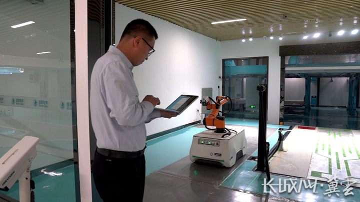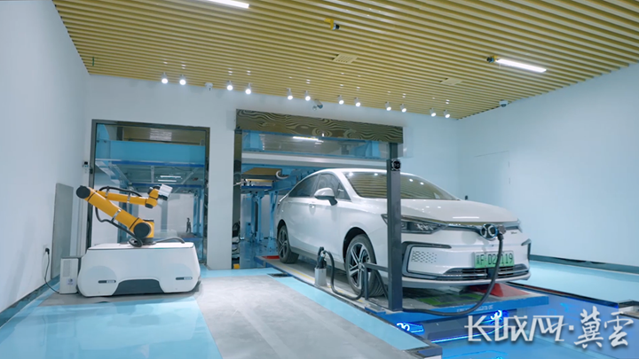 记者了解到,该充电站使用泊车机器人解决了车主停车难、取车难的问题。车主只需停车入位,简单操作后,插拔枪机器人就会被自动唤醒,寻找车辆并将充电枪插入车辆充电口,然后载车板就会将车辆平稳托起,随后精准送到停车位。