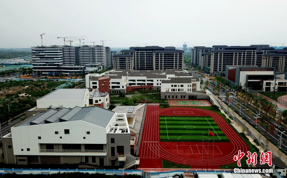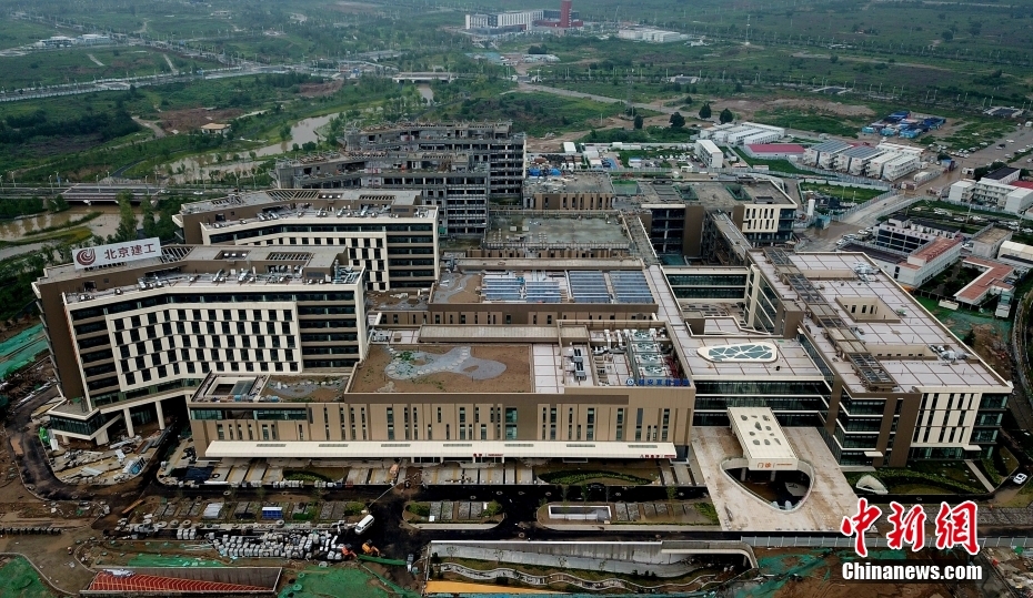 7月31日,航拍雄安宣武医院。近日,雄安宣武医院委托办医合作签约仪式在雄安新区举行,标志着雄安宣武医院进入筹备开诊运行的新阶段。截至目前,北京援建的“三校一院”全部委托北京市支持单位运营管理。(中新社记者韩冰 摄)