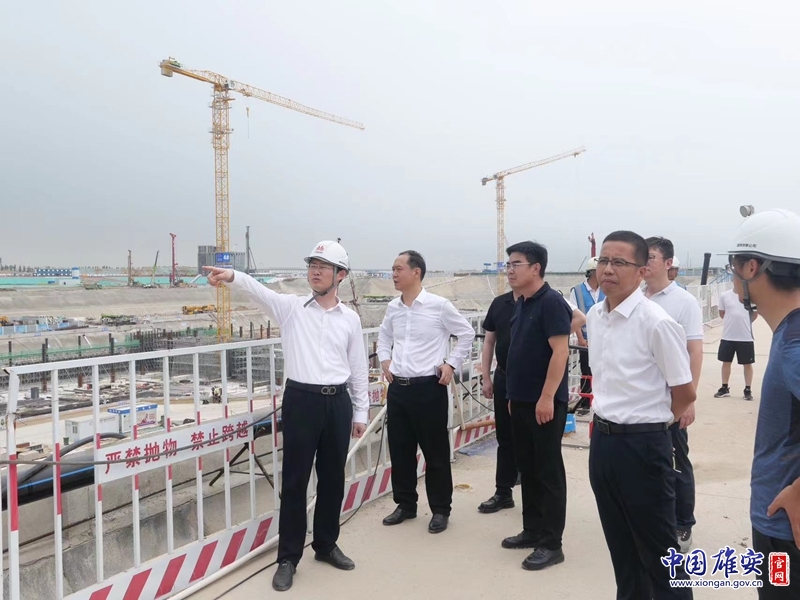 7月29日上午,启动(起步)区指挥部指挥长安庆杰带队赴启动区开展防汛排涝检查,图为在国贸中心现场查看基坑防水排涝准备工作。启动(起步)区指挥部供图