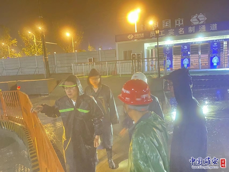 7月30日下午及夜晚,启动(起步)区指挥部副指挥长李波,启动区管委会党组成员、副主任李正昌,启动区管委会党组成员曹迪冒雨带队赴北海幼儿园、雄创院、文萃湖、东南居住片区一期、西北居住片区一期(招商蛇口)项目现场检查排涝通道,查看防汛排涝情况。