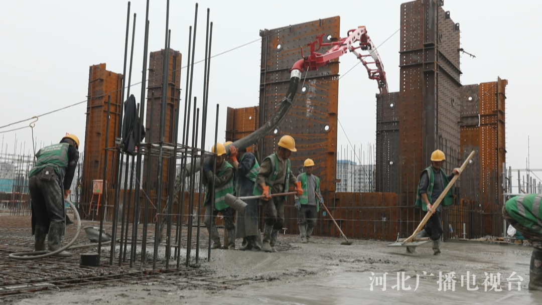北京城建中国联通互联网产业园项目项目经理 李铁兵:考虑到雄安地区的抗震设防烈度比较高,这个工程采用的是框架-剪力墙结构,可以起到地震时抗扭转、抗剪的作用。我们前期做好策划工作,后期严格施工,保证施工达到设计的要求。