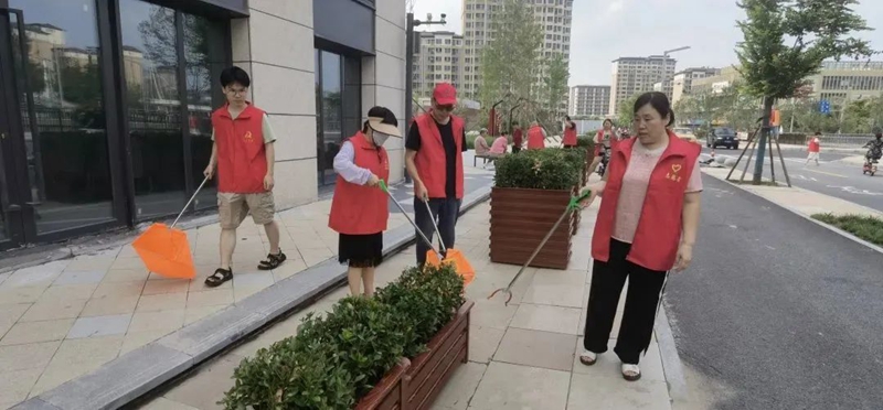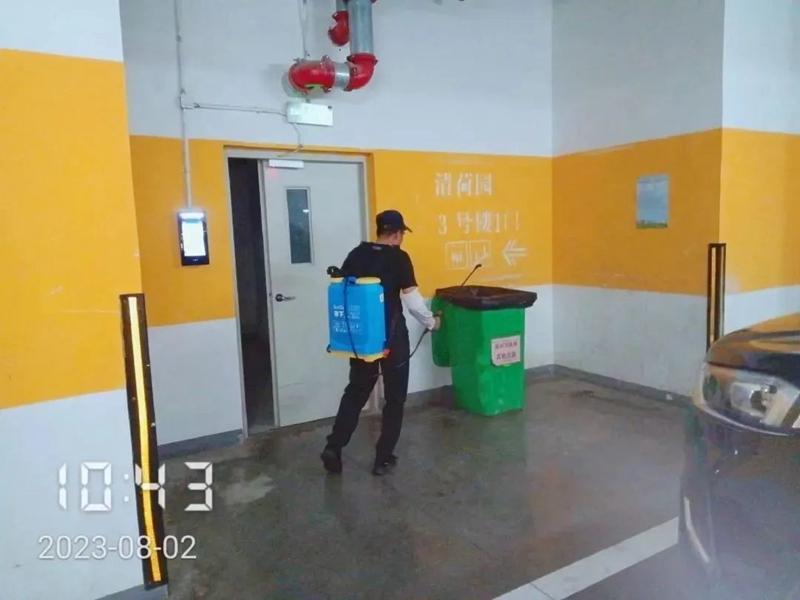 新荷社区工作人员、公益岗、楼门长、物业工作人员和“七色花”志愿服务队队员共同清理小区内雨后残留的垃圾和积水,并对重点区域进行消毒消杀,保障居民生命健康。