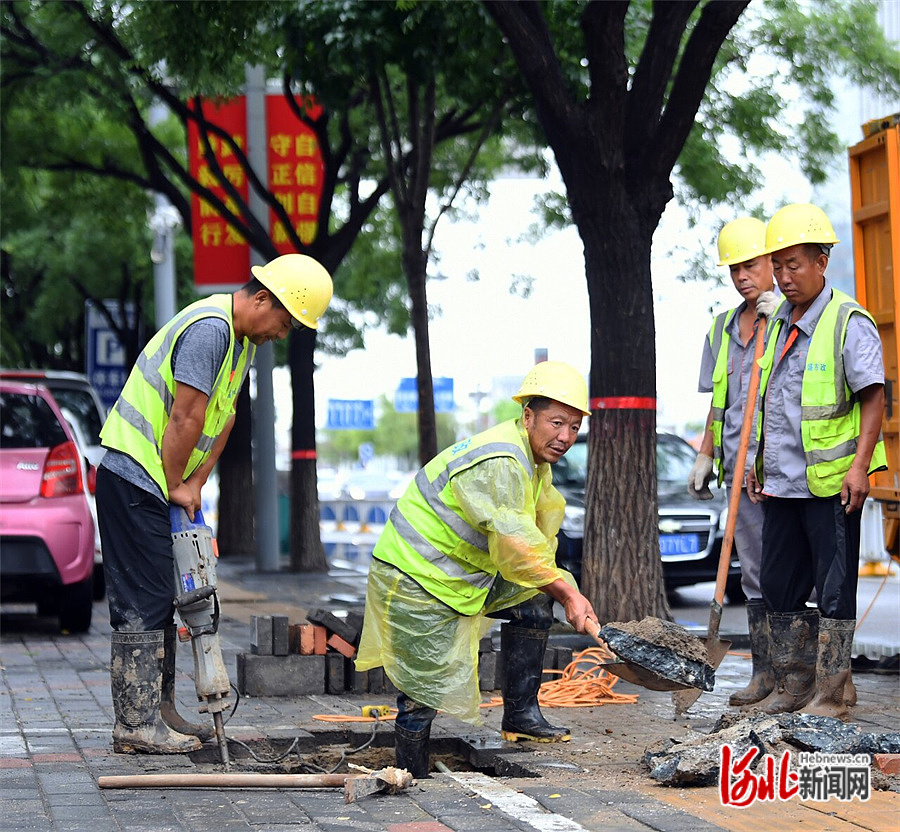日前,廊坊市市政设施管理中心全面细致排查市政管网,及时消除问题隐患,确保安全度汛。图为该中心工作人员对因暴雨破裂的管道进行抢修。河北日报通讯员孙宝宇 摄