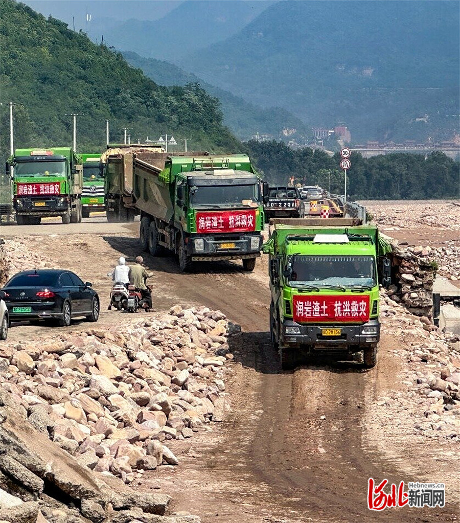 8月2日,邯郸武安市交通运输局公路养护站的抢险车辆在国道G234兴阳公路活水村段运送石料。河北日报记者田明 摄