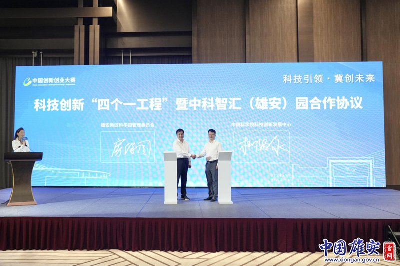 颁奖典礼上,雄安新区科学园管委会负责同志进行了科学园招商环境推介,中国科学院科技创新发展中心与雄安新区科学园管委会共同签署了科技创新“四个一工程”暨中科智汇(雄安)园合作协议。特邀评委对大赛决赛作了精彩点评。
