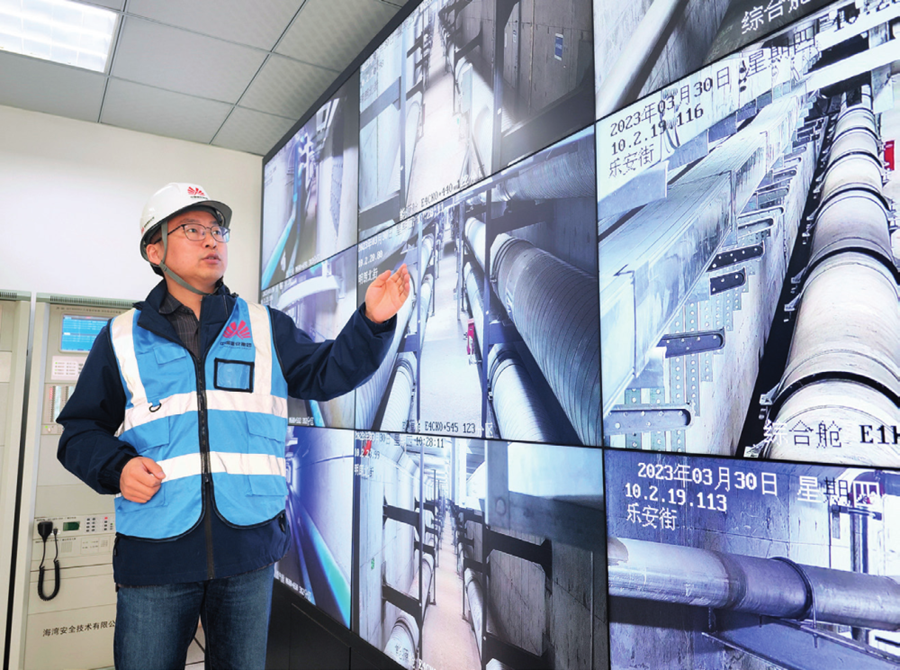 中国雄安集团年轻干部在雄安容东地下管廊监控室工作(2023年3月30日摄)朱旭东 摄
