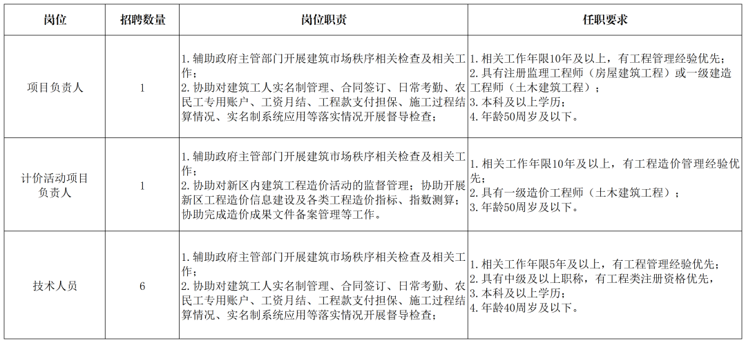 河北雄安人力资源服务有限公司(以下简称雄安人力公司)根据工作需要,面向社会公开招聘建筑工程项目负责人、计价活动、技术人员等岗位员工,工作地点在雄安新区。