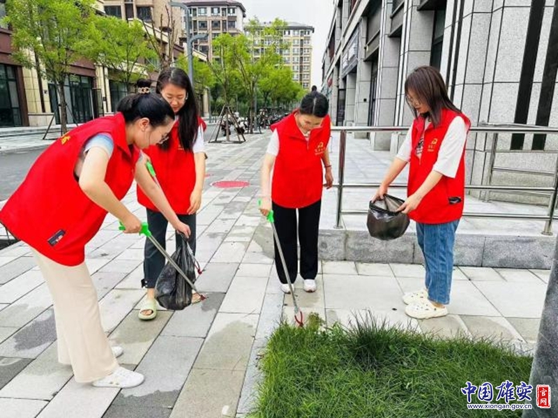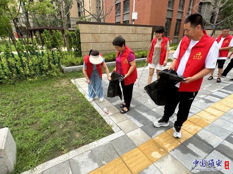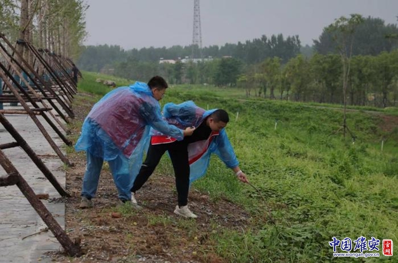 志愿者雨后清理垃圾。中国雄安官网发