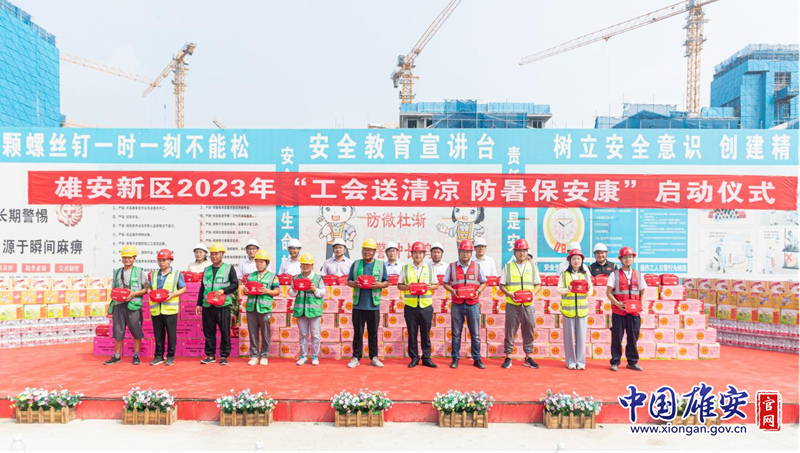 中国雄安官网8月11日电 为进一步做好高温天气下劳动者保护和防暑降温工作,按照中华全国总工会、河北省总工会安排部署,8月9日,雄安新区2023年“工会送清凉 防暑保安康”启动仪式在雄安新区容西片区F2标段项目现场举办。