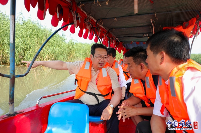 随后,张国华乘船来到潴龙河入淀口,登上堤坝,实地察看洪水下泄情况。他说,潴龙河是承接上游来水,最终汇入白洋淀的主要河流。当前,白洋淀上游来水仍然较多,新区防汛形势依然严峻。要高度重视、高度警觉,以时时放心不下的责任感,加强防范应对,确保安全行洪、安全度汛。要密切监测、及时研判水情,精准掌握上下游、干支流、左右岸水位变化,确保行洪过程安全平稳。要持续开展河道清理疏浚,统筹抓好垃圾清运、河面漂浮物清理、杂物无害化处理等工作,提高河道通行能力,改善水文条件和河道水质。