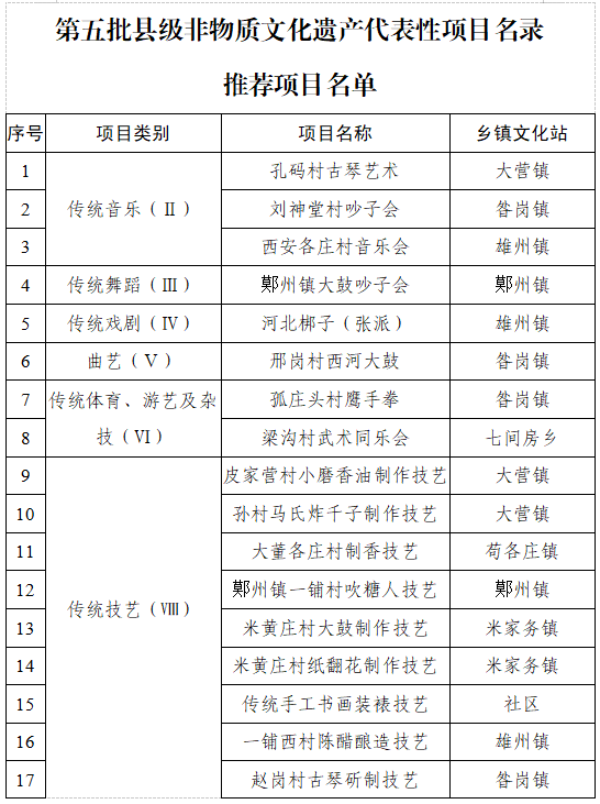 关于公示第五批县级非物质文化遗产项目名录推荐项目和第四批县级非遗代表性传承人推荐名单的公告