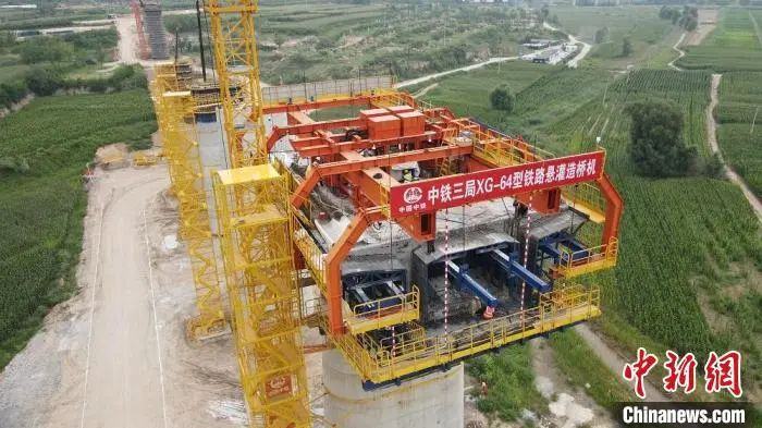 8月13日,随着XG-64型铁路悬灌造桥机顺利完成第一节段自动走行,雄忻高铁山西段成功实现“空中造桥”。这台新型“重器”为雄忻高铁山西段建设注入新动能。