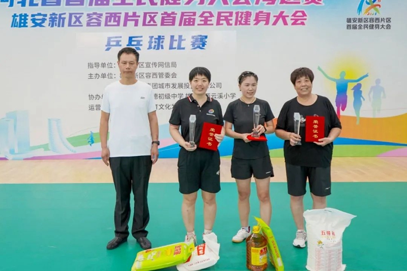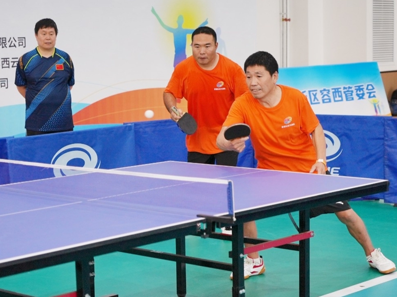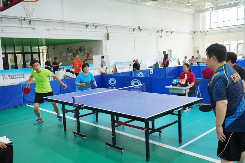 发球强攻、大力扣杀、回旋吊边、直板横打……雄安容西云溪小学体育馆内,来自全区各单位、各社区的12支代表队、50余位乒乓球爱好者以球会友,激情满怀,挥洒汗水,男子单打、女子单打、男子双打、女子双打、混合双打5个单项竞赛项目在这里精彩上演。