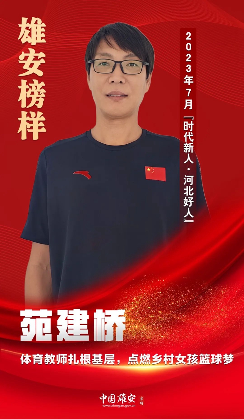 中国雄安官网8月17日电 苑建桥,男,汉族,1976年1月出生,中共党员,现任安新县老河头镇沈南小学体育教师。他扎根基层体育教育事业,点燃了乡村女孩的篮球梦。