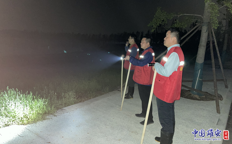 晚上9点,巡堤队员们拿着手电筒,严格落实昼夜巡查、不漏一寸的要求,用脚步丈量防洪堤。