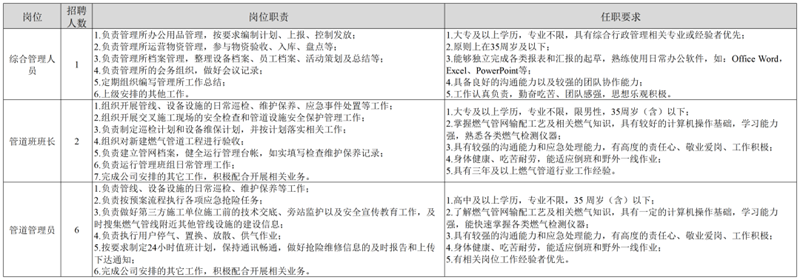 河北雄安人力资源服务有限公司(以下简称雄安人力公司)根据项目运营工作需要,现面向社会公开招聘综合管理、管道班班长、管道管理员等岗位工作人员,诚邀您的加入!