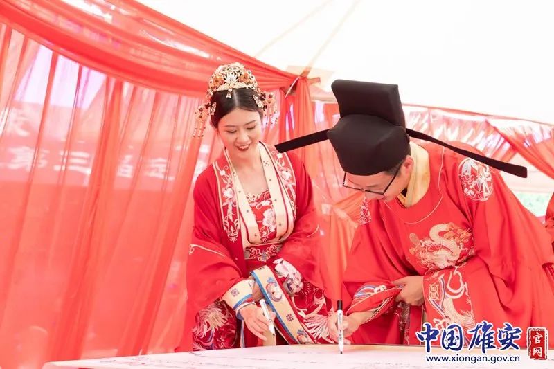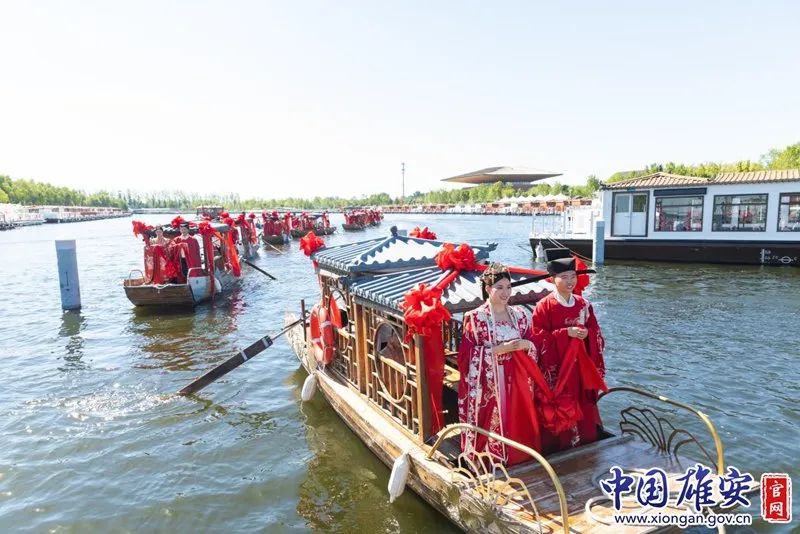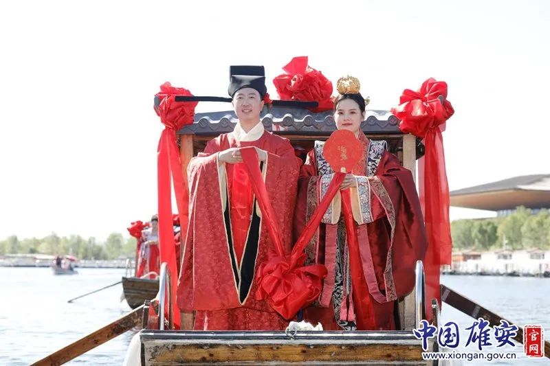 活动中,6对因建设新区结缘、积极践行喜事新办的新人,4对展现家风优良的最美家庭纪念婚代表相聚雄安,自白洋淀泛舟迎亲,经牵巾、告庙礼接娶新娘,行中式传统礼仪结宋韵良缘,以自身行动倡导简约适度的婚俗礼仪,讲小家故事弘扬良好的家风家教,展现了新区建设者独有的昂扬姿态、奋斗面貌、家庭形象,营造了“有厚度、有温度、有深度”的新区婚俗文明新风。活动上,由新区公共服务局指导建设的“情缘雄安”婚恋交友平台发布上线,平台将以新颖形式开展公益性联谊交友服务,为新区机关、企事业等单位搭建联谊鹊桥。