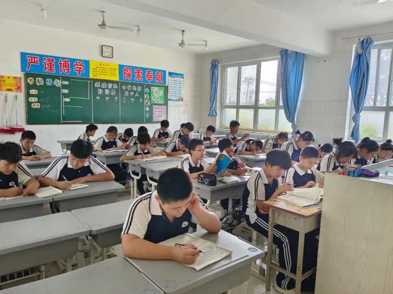 板东中学自2023年8月7日开始第一天“暑期自习课”,学生自愿到校自习,写作业、阅读、练字……值班教师陪伴着学生们并做好服务工作。